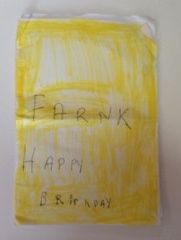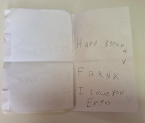 Eric made people awesome birthday cards. Frank misses his friend very much and hopes that everyone will give a person with challenges a chance to be a friend. We might all be surprised what we can learn from them and how much fun they are.